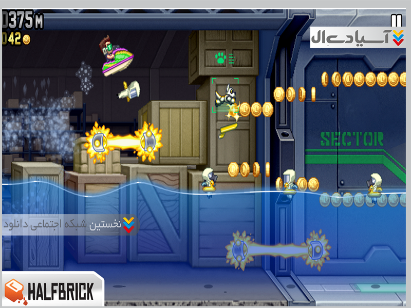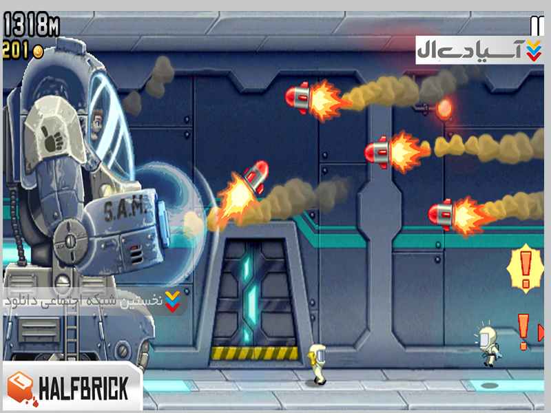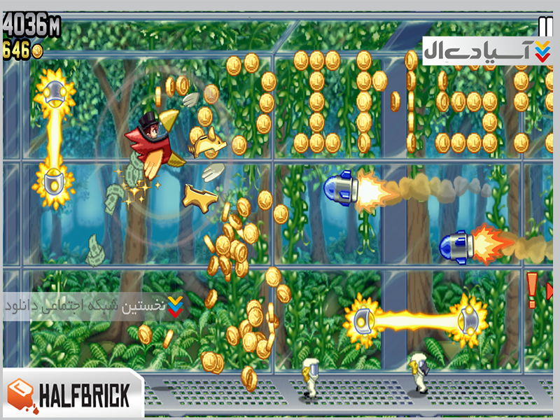 بازی Jetpack از دسته بازی‌های بسیار زیبا، جذاب و سرگرم کننده است. این بازی که توسط شرکت Halfbrick طراحی و ساخته شده، سبک خاصی را به بازی داده‌اند که جذابیت بیشتری داشته باشد. در ابتدا شما تنها دارای یک جت معمولی و کلاسیک هستید. بااین‌حال شما با جمع‌کردن سکه در سراسر مرحله قادر خواهید بود که جت های متنوع و قدرتمند خریداری کنید. همچنین می‌توانید با سکه های خود امکاناتی را که بازی در اختیار شما قرار می‌دهد را خریداری و در طول مرحله استفاده کنید. مثلاً می‌توانید با خرج کردن سکه امکانی را خریداری کنید که ابتدای بازی تا مسافتی را خودکار برود و بعد از آن بازی را ادامه دهید و همچنین در طول بازی سکه جون هست که اگر آن را دریافت کنید می‌توانید فرصت دوباره ای برای ادامه دادن بازی پیدا کنید.