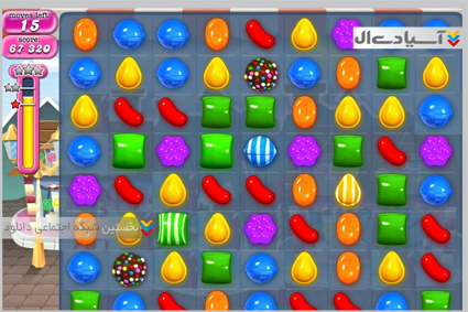بازی جالب و سرگرم کننده Candy Crush Saga ، از سوی سازندگان بازی های معروفی نظیر Pet Rescue Saga  و  Farm Heroes Saga برای کاربران آیفون و آیپد آماده گردیده است. بازی کندی کراش عنوانی محبوب و متناسب با انواع رده های سنی است که کاربران مختلف صرف نظر از رده سنی می توانند اوقات خود را با آن بگذرانند. شیوه ی این بازی در سبک بازی های ردیف کردن اشیای هم رنگ در کنار همدیگر انجام می گیرد ؛ بنابراین ، شخص پلیر لازم است که اشیای هم رنگ را در کنار هم به تعداد 3 به بالا قرار دهد تا ضمن حذف شدن آنان ، امتیاز مربوطه نیز محاسبه و ثبت شود. این بازی به صورت کاملاً رایگان در دسترس کاربران است ، اما در صورتی که کاربران تمایل داشته باشند می توانند ویژگی ها و قابلیت های جدید را نیز در داخل اپلیکیشن خریداری نمایند. دنیای رنگارنگ کندی کراش از مجموعه ای از آب نبات های رنگارنگ تشکیل شده که کمپانی سازنده ، اولین موفقیت خود را در عرضه این بازی آنلاین در شبکه اجتماعی فیسبوک به دست آورد. در ادامه نسخه های iOS و آندرویدی این بازی نیز در مارک های اپل و گوگل قرار گرفتند و طرفداران بسیاری را از سراسر دنیا به خود جذب نمودند. در هر مرحله از این بازی ، صفحه متشکل از مجموعه ای از آبنبات ها در پیش روی پلیر قرار می گیرد و این شخص می تواند با حرکت دادن این آبنبات های رنگی ، اقدام به کسب امتیاز کند. از جمله آبنات های موجود در این بازی به شرح رو به رو نام گذاری شده اند : لوبای ژله ای قرمز ، آبنبات نارنجی رنگ ، آبنای قطره ای شکل لیمویی ، آب نبات آبی رنگ و خوشه ی بنفش