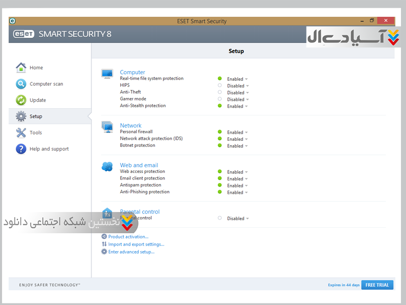 اینترنت سکوریتی یکی از برترین نرم افزار های شناخته شده در سراسر جهان و در میان ایرانیان میباشد . محیط کاربری آسان و کاربردی نرمافزار سعی شده تمامی ابزارهای جهت شناسایی ویروسها و تروجان ها استفاده شود . الگوریتم های موجود بر روی نرمافزار و استفاده از موتور اسکنر قدرتمند باعث میشود تا تمامی فایلهای موجود بر روی هارددیسک بهصورت طبقهبندیشده موردبررسی قرار گیرد . استفاده از اسکژول های نرمافزار این قابلیت را به نرمافزار اضافه میکند تا کاربران بهآسانی نحوه عملکرد را بهصورت دلخواه تنظیم نمایند . استفاده و دسترسی برای کاربران و فرزندان با استفاده از تنظیمات نرمافزار هم در محیط برنامه قابلبرنامهریزی میباشد . مسدود کردن سایتها ، امنیت در محیط فضای مجازی ، اسکن ایمیلهای مخرب توسط نرمافزار ESET Internet Security قابلشناسایی بوده و یکی دیگر از ویژگی این نرمافزار را میتواند آپدیت سریع و آسان آن اشاره کرد . این نسخه از نرمافزار بر روی تمامی ویندوزها ازجمله ویندوز 10 قابلنصب هست . ویژگی نرمافزار ESET Internet Security: - دارای موتور جستجوگر قدرتمند - آپدیت سریع و آسان - شناسایی سریع ویروسها ، تروجان ها - امنیت در محیط وبسایتها ، ایمیلها و ... - مناسب برای تمامی ویندوزها