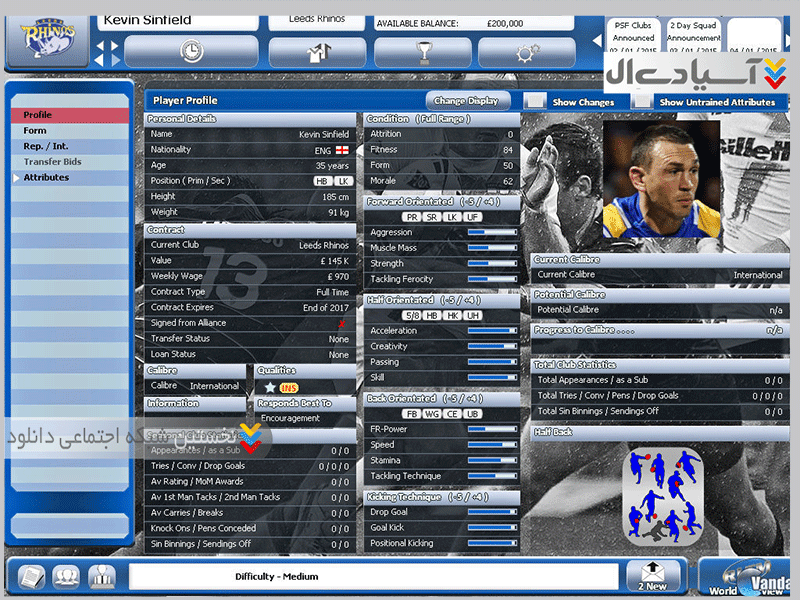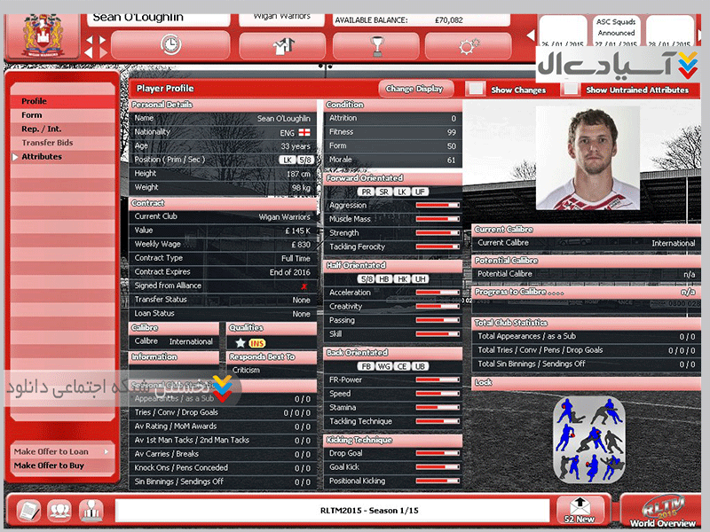 نام بازی : Rugby League Team Manager 2015