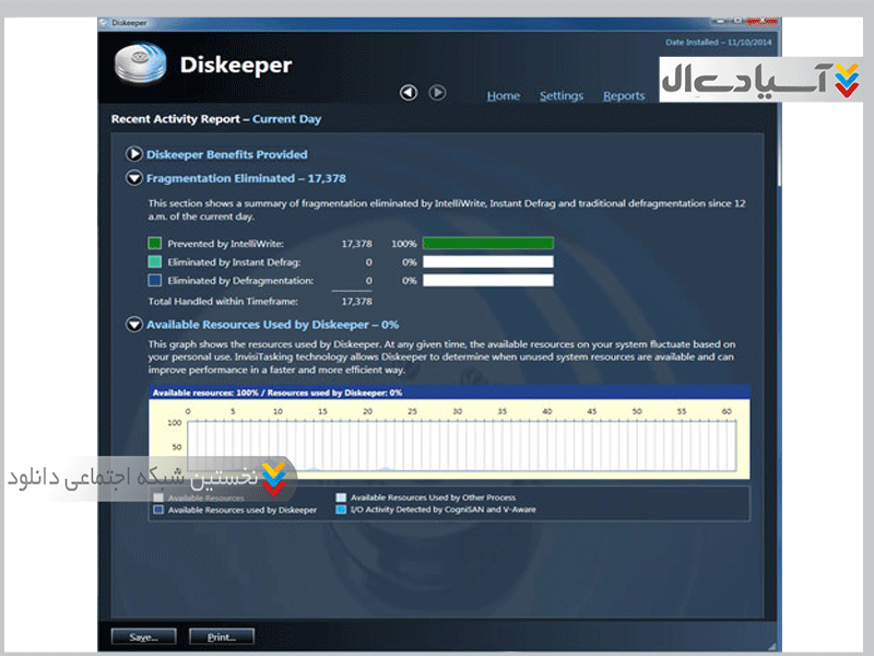 Diskeeper نرم‌افزاری کارآمد و بسیار عالی است که  برای بهینه سازی هارد دیسک طراحی شده و به کاربر این امکان را می‌دهد تا به راحتی  هارد دیسک خود را یکپارچه‌سازی کند. همچنین با کمک این نرم‌افزار شما قادر خواهید بود تا با اصلاح کردن فایل‌های پراکنده، به سرعت هارد دیسک خود بیفزایید که این برنامه دارای سرعت بالاتری نسبت به برنامه‌های مشابه را دارا می‌باشد.به عبارتی 3 برابر نرم‌افزارهایی که عمل یکپارچه‌سازی را انجام می‌دهند  کار می‌کند.یکی از قابلیت‌های این نرم‌افزار این است که با وجود موتور قدرتمندی که دارد می‌تواند تمامی درایو ها را به طور همزمان  و با سرعت بالایی یکپارچه‌سازی کند.هم اکنون می توانید این نرم افزار  حرفه ای را به طور رایگان از روی سایت دانلود نمایید.