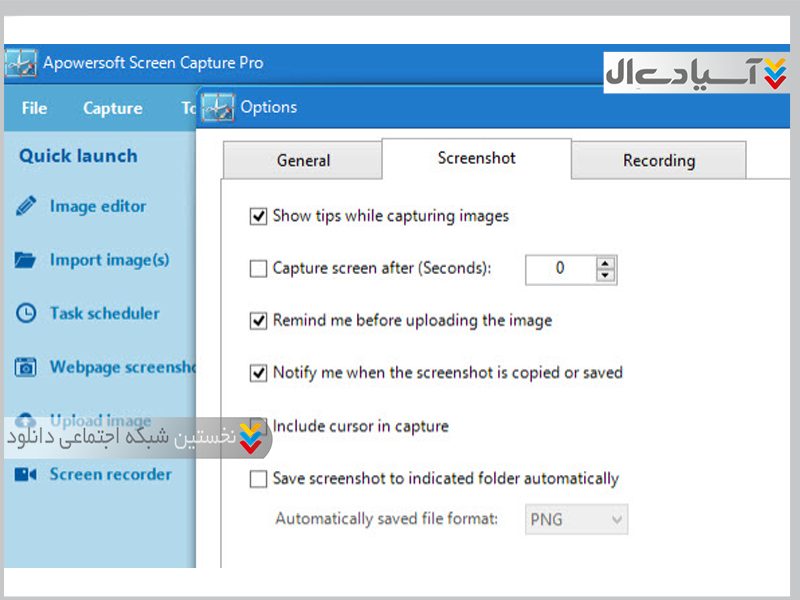 با استفاده از نرم‌افزار کاربردی Apowersoft Screen Capture Pro می‌توانید از صفحه‌نمایش محیط دسکتاپ و یا محیط‌های نرم‌افزارهای مختلف برای آموزش عکس بگیرید.گاهی شاید بخواهید یک نرم‌افزاری را به دوستتان آموزش دهید و یک ابزاری را در یک نرم‌افزار مهم به کسی که در دسترس شما نیست و با اینترنت در ارتباط هستید را نشان دهید،نرم‌افزار فوق می‌تواند راه‌حلی برای این‌گونه فعالیت‌ها برای شما باشد.این نرم‌افزار این قابلیت را دارد تا بتوانید با آن فیلم‌برداری هم انجام دهید.این نرم‌افزار این قابلیت را دارد تا بتوانید از ترکیب چند تصویر در داخل فیلم استفاده نمایید و این مزیت انعطاف‌پذیری این نرم‌افزار را نشان می‌دهد.با استفاده از این نرم‌افزار می‌توانید فیلم‌های و عکس‌های گرفته‌شده را در معروف‌ترین شبکه‌های اجتماعی به اشتراک بگذارید.شما پس از گرفتن و ذخیره تصاویر و فیلم‌های متنوع از صفحه دسکتاپ و محیط نرم‌افزارهای داخل ویندوز می‌توانید فایل‌های ویدئویی و تصاویر را در فضای رایگانی که خود نرم‌افزار در اختیارتان می‌گذارد آپلود نمایید.نرم‌افزار Apowersoft Screen Capture Pro 1.1.9 قابل‌نصب بر روی ویندوزهای 32 و64 بیتی بوده و از ویندوزهای 8.1 / 8 / 7 / XP پشتیبانی می‌کند.