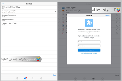 Downloads نام نرم‌افزاری است که امکان دانلود انواع فایل‌ها را در دستگاه‌های آیفون و آی پد برای شما فراهم می‌کند. شما می‌توانید در صورت تمایل ، فایل‌های دانلود شده را در داخل همین نرم‌افزار مشاهده کنید و یا اپلیکیشن اجرائی مربوطه را پیش از اجرا انتخاب کنید ، همچنین به‌سادگی می‌توانید فایل‌های دانلود شده را به کامپیوتر خود منتقل نمایید. همواره عدم وجود یک دانلود منیجر به‌طور پیش‌فرض در سیستم‌عامل iOS یکی از مهم‌ترین نیازهای کاربران بوده است. درگذشته کاربران پس از جیلبریک کردن دستگاه‌های خود ، جهت فعال‌سازی قابلیت دانلود ، پلاگین های دانلود منیجر را بر روی مرورگر سافاری نصب می‌کردند. اما اکنون اپلیکیشن های مدیریت دانلود بسیار قدرتمندی در اپ استور هستند که این کار را در محیطی کاربرپسند تر انجام می‌دهند. نرم‌افزار دانلود دارای یک مرورگر داخلی است که می‌توانید در آن صفحه موردنظرتان که لینک دانلود در آن قرارگرفته است را بارگذاری کنید و در ادامه با انتخاب گزینه دانلود ، اپلیکیشن Downloads شروع به انجام‌وظیفه خود کند. این برنامه دارای سرعتی بسیار بالا در دریافت فایل‌ها است ؛ این نرم‌افزار امکان Pause/Resume را همانند دانلود منیجر IDM ویندوز برایتان فراهم می‌آورد و تمامی فایل‌های دانلودی دارای یک نوار وضعیت دقیق هستند. نرم‌افزار مدیریت دانلود Downloads دارای یک فایل منیجر قدرتمند نیز می‌باشد و قادر است فایل‌های .PDF, .DOC, .XLS, .PPT, .TXT, .HTML  و .RTF را برایتان بدون هیچ‌گونه نرم‌افزار جانبی اجرا کند. همچنین این فایل منیجر داخلی قادر است تمامی عملیات مرسوم نرم‌افزارهای مدیریت فایل نظیر : کپی ، انتقال ، تغییر نام ، جستجو ، خارج کردن از حالت فشرده و... را به‌سادگی انجام دهد. تصاویر دریافتی شما نیز به‌سادگی قابل‌انتقال به Camera Roll هستند.