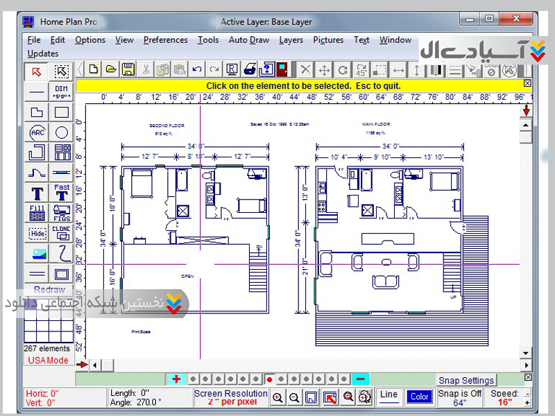 نرم افزار Home Plan Pro یکی از نرم افزارهای کم حجم نقشه کشی می باشد که به کاربر این امکان را میدهد تا به راحتی و با سرعت بیشتری نقشه خود را ترسیم کند. کاربر می تواند آن را به صورت 3D یا 2D ذخیره کند و در اندازه های مختلف آن را چاپ کند.با یک بار استفاده از این نرم افزار آن را جایگزین برنامه معروف ترسیم نقشه کشی اتوکد خواهید کرد.در این نرم افزار شما می توانید تصاویر و طرح های خود را لایه بندی کنید در این صورت هر زمان که بخواهید می توانید لایه ای را پنهان و یا نمایان کنید.در هنگام طراحی های خود می توانید هر نوع خطوط و شکلی از جمله قوس, مستطیل, دایره را به راحتی و بدون هیچگونه زحمتی ترسیم کنید.