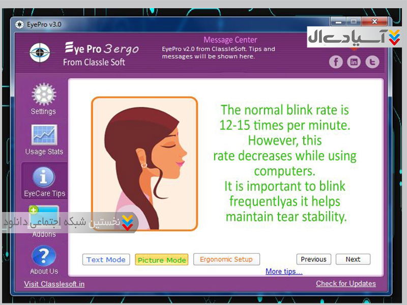 نرم افزار محافظت از چشم هنگام کار با رایانه است. EyePro یک نرم افزار بسیار کاربردی و مورد نیاز برای کاربران و سیستم عامل ویندوز است که تا به حال مخاطبین زیادی را به خود جذب کرده است و به دلیل کاربردی بودن مورد استفاده کاربران زیادی قرار گرفته است. یکی از بزرگ‌ترین مشکلات ما هنگام کار با رایانه چشم ما است که کار با رایانه باعث ضعیف شدن آن می‌شود ولی شما با استفاده از نرم افزار آی پرو می‌توانید با برنامه ریزی و زمان بندی‌ای که خود نرم افزار به صورت خودکار برای شما انجام می‌دهد سلامت چشمان خود را تقریباً به صورت کامل تضمین کنید و با خیال راحت با رایانه خود کار کنید. این نرم افزار به صورت خودکار هر چند وقت یه بار زمانی را برای استراحت چشمان شما مشخص می‌کند و با ابزارهایی که در این نرم افزار وجود دارد به شما یاد آوری می‌کند.