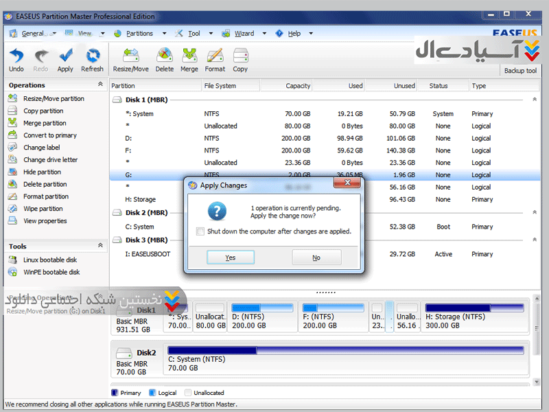 ویژگی های نرم افزار   EASEUS partition master :