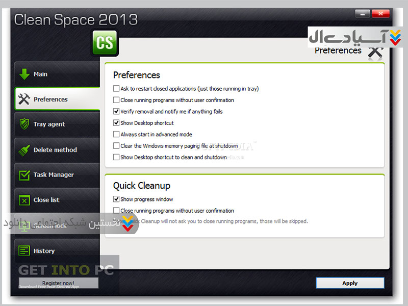 ویژگی های نرم افزار Clean Space: