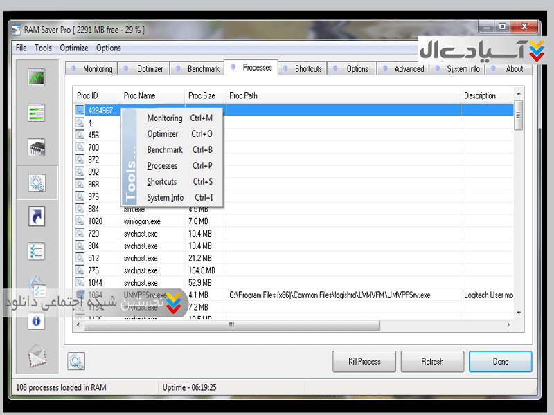ویژگیهای نرم افزار RAM Saver    :