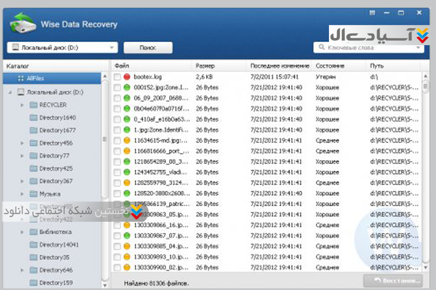 نرم افزار  Wise Data Recovery نرم افزاریست رایگان در خصوص بازگردانی اطلاعات پاک شده برنامه های سیستمی در  رایانه شما می باشد.این نرم افزار این توانایی را دارد تا فرمت فایل های پاک شده از جمله اسناد متنی،عکس ها،ایمیل ها،و... را بازگردانی کند.